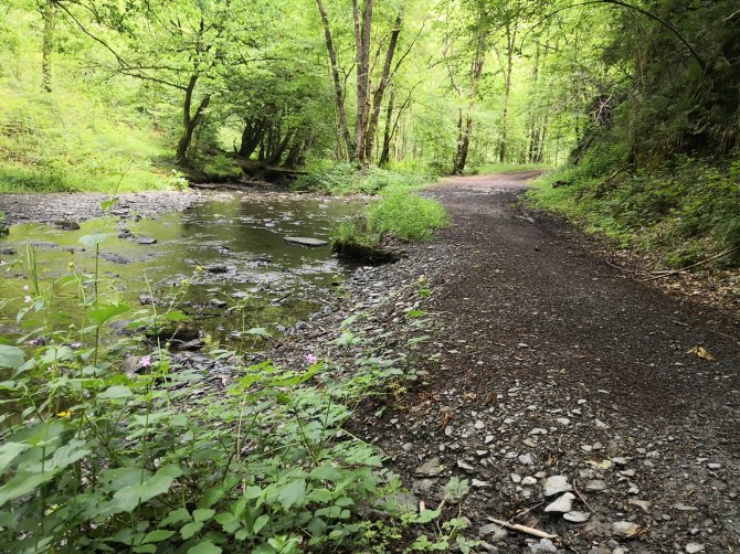De kronkelweg van de GR brengt me verder dieper in het bos langs de rivier La Nafraiture.