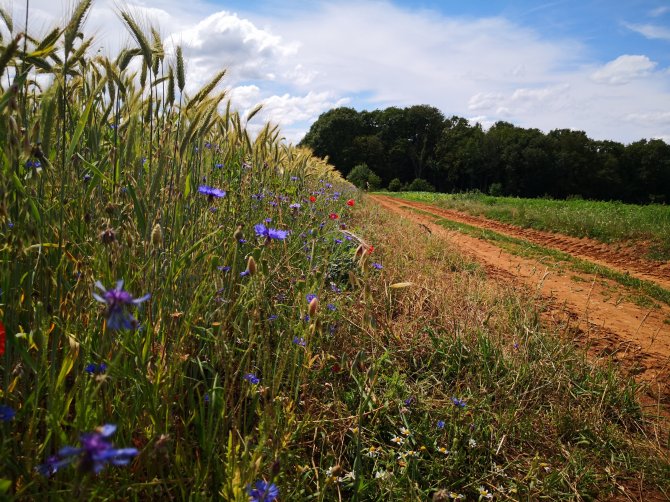 “Quesque vous avez trouvez la”, vraagt een man mij op een landweg. Hij zag me voorovergebogen. “Oh je prenais une photos des Camomilles.” “Ah, il y en a la !” “Oui, mes je vous les conseille pas de les ceuillir à cette endroit. Le fermier traité son champ.