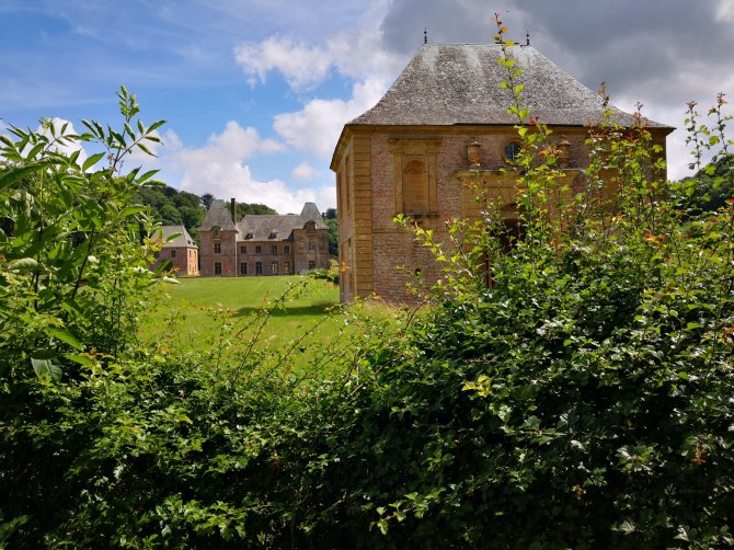 Een halte aan Le Mont-Dieu, een vroeger Kathuizerklooster van de periode 1100. Een stukje stokbrood, een makreel doosje, en vers geplukte kersen gekregen van Jacques en Fabienne, weten me te smaken.