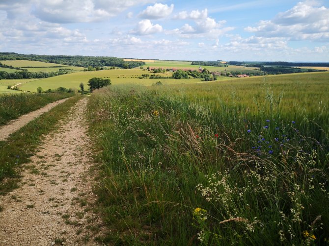 De geuren van de lange grassen, de Camille en wilde munt, de braamstruiken. Het geluid van de krekels en gezoem van vliegen insecten. De vogels… Ik heb de indruk een beetje in herhaling te vallen, de woorden schieten me echter tekort om er andere verwoording aan te geven aan wat de natuur me brengt.
