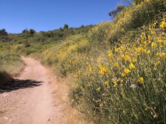Amai, wat prees ik me gelukkig om zoveel wondermoois te mogen zien en gewaarworden. Hoe de aarde met haar mantel van groen, haar zachtheid onthult. Waar ik dagelijks getuige mag van zijn. De zoete geur van de brem die me reeds een paar dagen vergezeld. Het geel die vreugde met zich meedraagt, de fladderende vlinders die voor me vliegen alsof ze mijn weg openen… het verveeld me nooit.