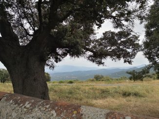 Ik wandel nog een zes kilometer verder om er op een camping à la ferme te overnachten, midden de natuur onder een prachtige eik met zicht op Pech de Bugarach. Wat een zalige plaats. Ik geniet van de zachte ondergaande zon die de berg kleurt.
