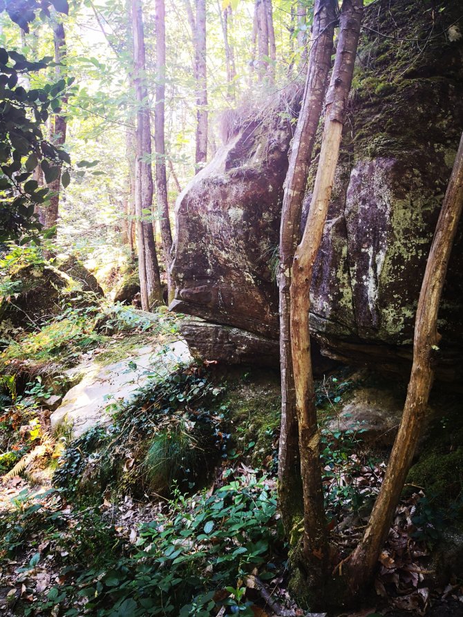 Na een zalig ontwaken midden de natuur in ‘Lavaldieu’ stap ik verder de natuur in via een pad. Hoe dieper ik het bos in stap, hoe minder het pad duidelijk wordt. Varens, bramen, brem overheersen de weg. Ik blijf volgen en vertrouw op de platgetreden grassen. Hier en daar is de grond omgedraaid, everzwijnen. Ik blijf verder hun weg volgen. Na twee uur wandelen kom ik uit het bos, verder richting de rivier ‘La Sals’. Richting ‘Le Serbairou’, de GR is niet meer bewandelbaar en dien rechtsomkeer te maken. Hier en daar is zelfs een stuk van de weg verdwenen door zware regenval.