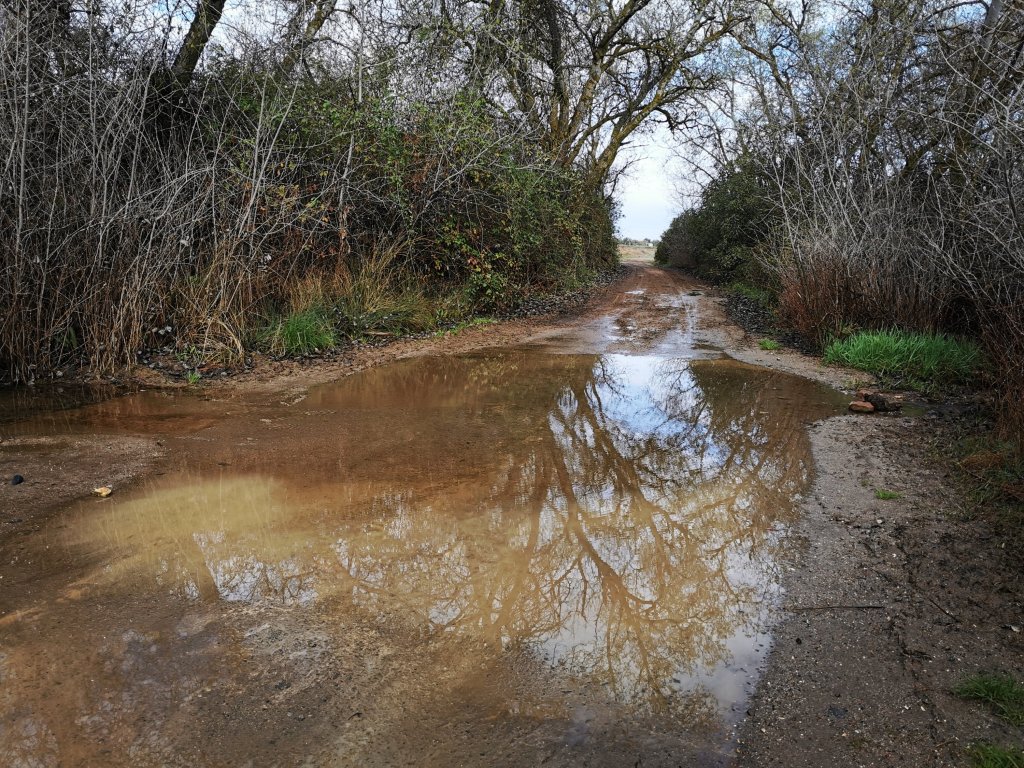 Voor de wekker teken heeft, sta ik op. Ik kijk naar buiten… Oeps… ik wist dat het zou regenen, maar dit hmmm. Ik kijk op de kaart waar ik zal overnachten en bekijk hoe de weg is aangeduid. De weg gaat over een landweg. Ohho… oh, neen geen zin om terug schaatsenrijder te spelen.