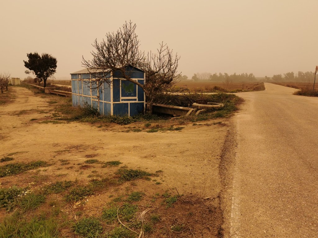 In de verte kan ik Medellín zien. Rond tien uur is de verkeersdrukte verdwenen, en komt de zon komt er door, het begint op te klaren. Kort erna gebeurd iets vreemd, ik begrijp het niet. De verkeersdrukte is verdwenen en plots komt er een donkere bruin-gele wolk af. Bizar. … tot ik op fb kijk en surrealistische beelden zie. Zandstof die overwaait van de Sahara. Och, zo bevreemdend. En voor de mensen die denken dat het aan het witbalans ligt van de camera… Neenneen. Af en toe zijn verschillende warmte stromen voelbaar. Soms is het warm en dan plots een heel frisse wind. In de namiddag komt de wind strakker opsteken, ik hoop dat het nog rustig mag blijven tot ik een overnachtingsplaats heb gevonden.