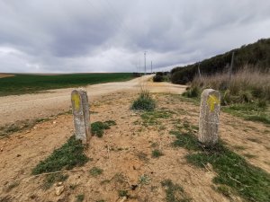 Ondertussen zit ik hier aan tafel in een albergue te schrijven terwijl iedereen al een uur in bed ligt. Het is 21:40. Extramadura ligt in de rug, vandaag kon ik terug beginnen wandelen deze keer in regio Castilië en Leon. Lange wegen, open velden tot oneindig. Doet me wat denken aan het gebied rond Reims op de Lemovicensis. Akkers, akkers, windmolens, hoge electrische palen.