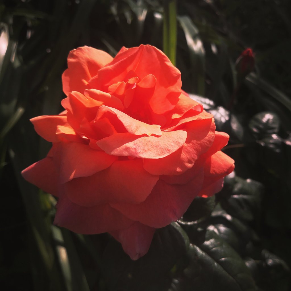 Vandaag wordt moederdag gevierd. Ik heb gekozen om naar de zee te gaan en dicht bij het water te zijn. Bij het opstaan open ik mijn gordijnen. Ik word gegroet door een prachtige rood oranje roos die zich net opende. De roos die op het Magdalena wiel geplaatst is bij Anna en Joachim. De voorouders. Ik open de deur en ga er mijn neus insteken. Ik sluit mijn ogen haar verrukkelijke geur verrast me vrolijk.