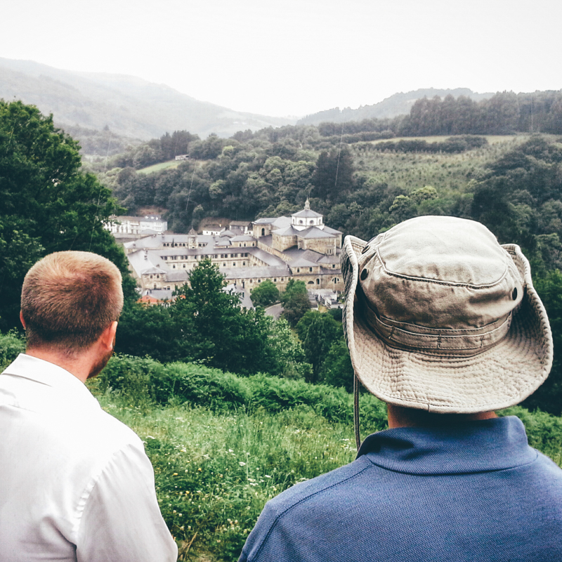 In 2013 ergens midden de Pyreneeën stop ik langs de baan om een buizerd te bekijken in een rotsflank. Achter mij een waterstroom, een kapel, de Sint-Jacobsweg. Mijn eerste ontmoeting met de camino naar Santiago de Compostela. Op 1 april 2014 had ik geen woning meer. Een ideaal moment dus om wat reeds in de Pyreneeën werd aangewakkerd te ondernemen. Ik vertrok – zonder voorbereiding – naar Compostella. Mijn startpunt was Namen. Drie maanden later kwam ik aan in Compostella.