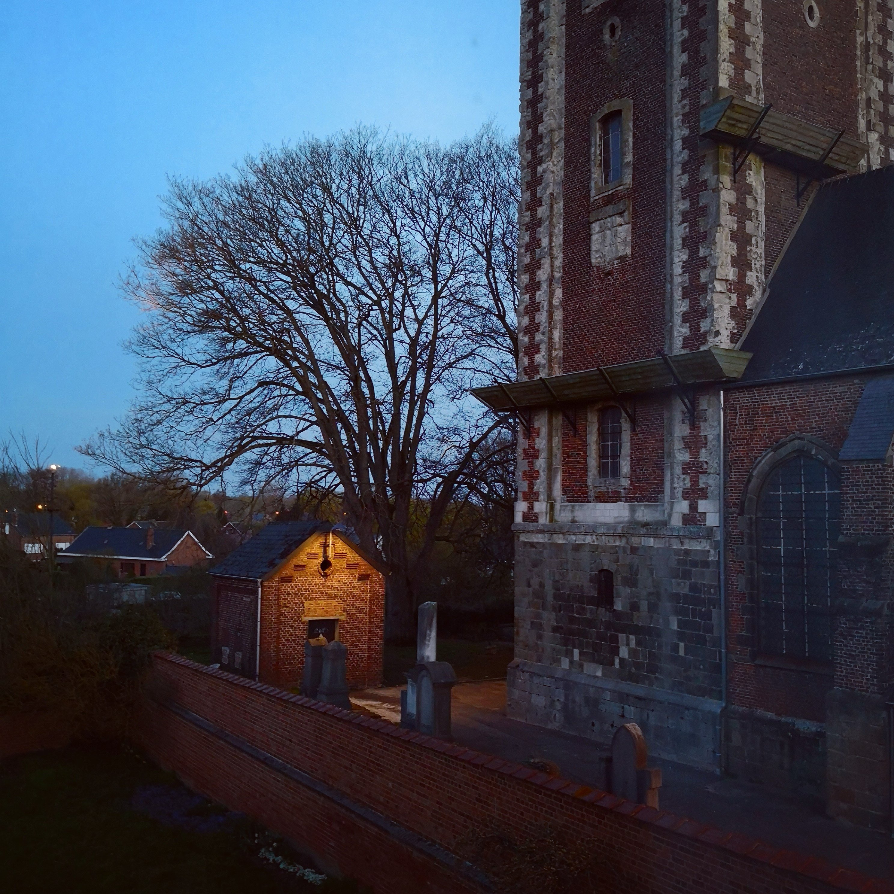 In Chièvres – met zijn grote markt waar ik me zo een levende boerenmarkt kan voorstellen – ga ik om de hoek binnen in de kapel Notre-Dame de la Fontaine en wat later in de kerk er niet ver vandaan.