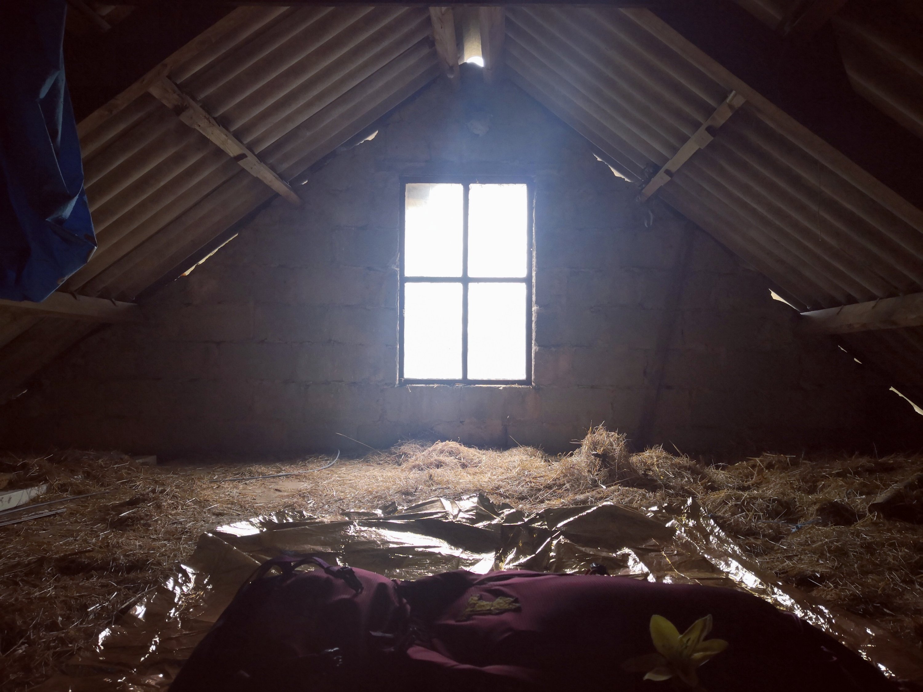 Ik eindig de avond aan tafel bij de buren en de nacht breng ik door op hun hooizolder na een avondwandeling en een bezoekje aan 2 ezels en een pony.