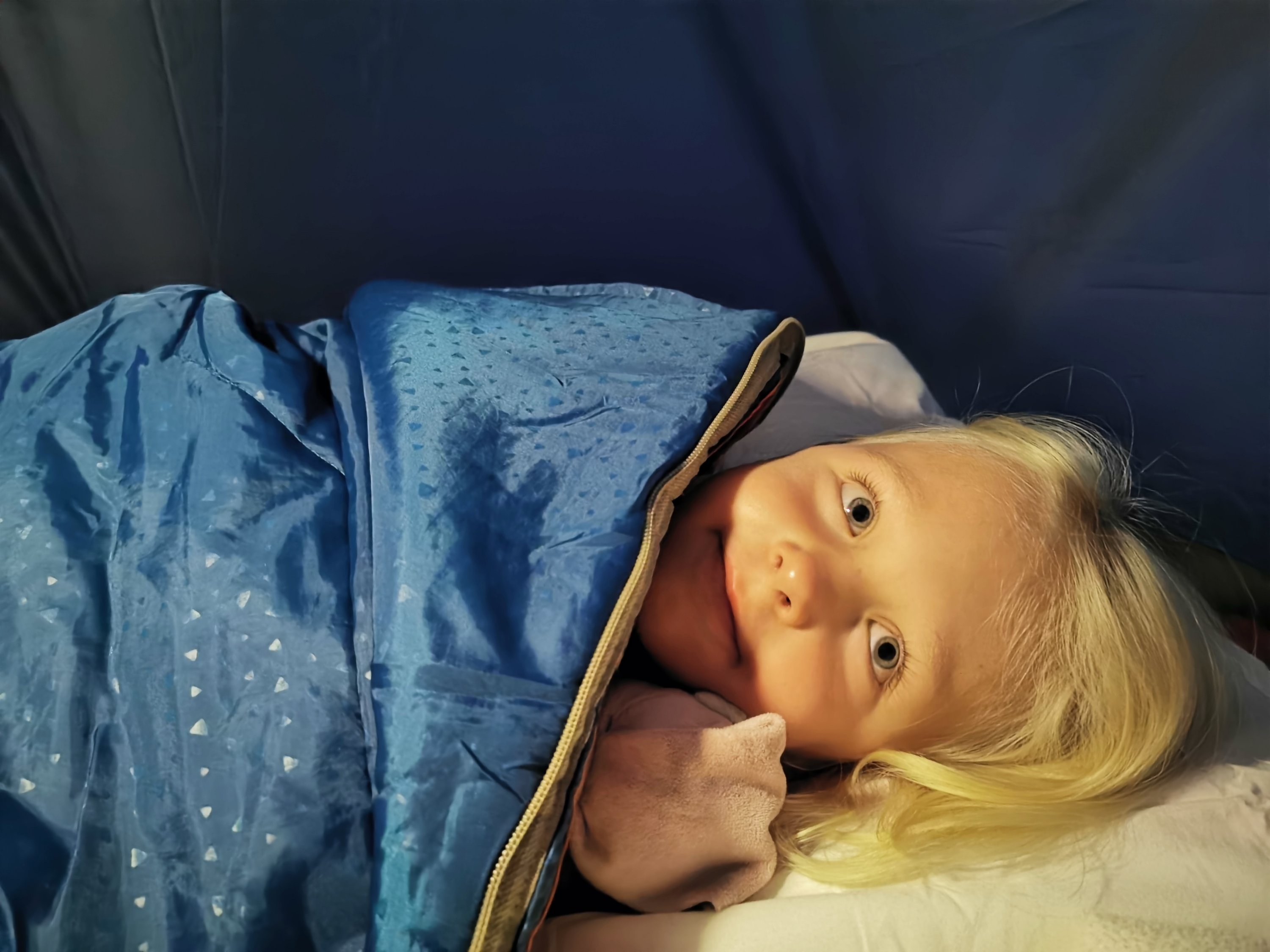 Het was mooi te zien hoe ze haar plaatsje eigen maakte. Haar knuffel deken, beertje, lampje… Eerst observeren, luisterend alle hoekjes bekijken, haar zelf geruststellen… En wat deed ze het goed. De ganse nacht lag ze zalig te slapen met haar knuffel in haar handen. En zo werd de tarp liefdevol en zacht ingehuldigd met een bijzonder mooi kind ‘Lena’.