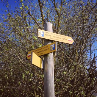Een pauze onder een afdak. Voor me een bord einde dorp ‘Billy le Grand’ eens wat anders dan Billy the kid. Ik laat mijn voeten wat lucht scheppen en laat mij tenen verschillende bewegingen maken. Stond er een aangezicht opgetekend, dan zou het glimlach zijn.