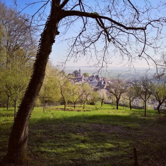 Na het bos blijf ik even staan en neem ik de tijd om de omgeving in me op te nemen. Een kraai. Vogels zingen in het rond. De wind die af en toe mijn oren streelt. Het lang gras danst heen en weer. Voor mij een vergezicht. Wijnranken. Een witte wagen. Een vrouw die zich verplaatst van links naar rechts. Aan haar zijde een trouwe vriend. Een herdershond. Verder een dorp. Nog verder de autoweg. Wanneer ik mijn ogen focus op de horizon, zijn de wagens net mieren die heen en weer hun baan afleggen. Een snelheidstrein, net een slang in het landschap.