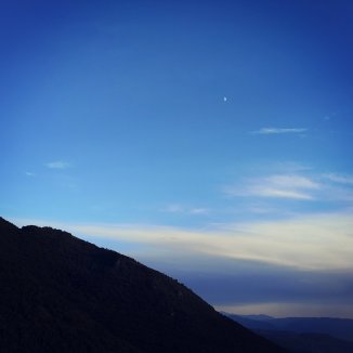 Voor het slapen gaan geniet ik van de rust en stilte in de natuur. Het is er zo stil dat je aan de andere kant de wilde dieren hoor roepen in het bos. Een halve maan is al van de partij… het wordt vroeg donker… Ik voel mijn lijf zwaar worden.. Tijd om te gaan slapen.