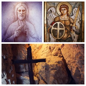 Aangekomen… stap ik de kerk binnen… Een kerk die de naam draagt van de Heilige Jacobus. Franciscus en Jacobus samen. In de kerk is een jongeren groep aanwezig… Ik zet me bij… Plots zonder enige aanwijzing begin ik te wenen… Een rust komt over mijn lichaam… Telkens wanneer ik dit heb op deze tocht is het alsof er telkens iets in mij een stap vooruit maakt en ik duidelijke antwoorden krijg. Alsof ik telkens een mantel aflaat en naakter maar rijker wordt. Een bijzondere plaats… Na de mis bezoek ik het sanctuary en vroeger klooster. Het is hier even vredig en met dezelfde energie als in de Abbazia di San Magno. Trappen naar beneden, kom ik in de ruimte waar Franciscus samen met zijn broeders heeft gebeden. Wat verder een kapel gewijd aan aertsengel Michael.