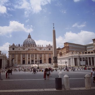 Mijn ademhaling… Ander ritme… . We zeggen geen woord… We naderen… En plots staan we op het Vaticaanplein…groots, euh eerder immens… Te groot… Ontroerd van het aankomen in Rome, het eindpunt van de VF, niet een eindpunt. Van België, over Frankrijk, via Zwitserland, Italië in… 2160km te voet. Ik voel dat ik me even wil afzonderen… Mijn telefoon… mijn metekind… het antwoordapparaat…ze belt me terug…