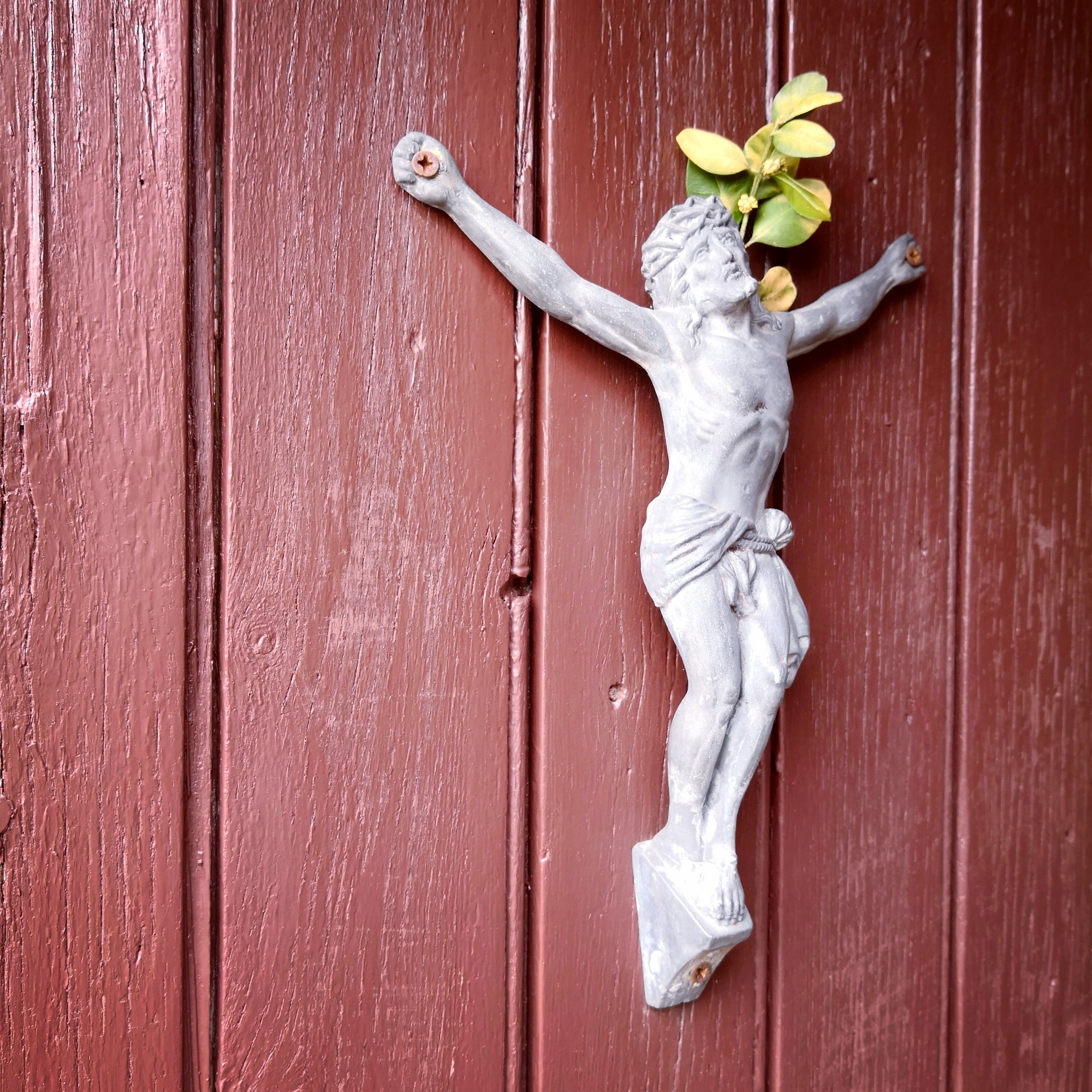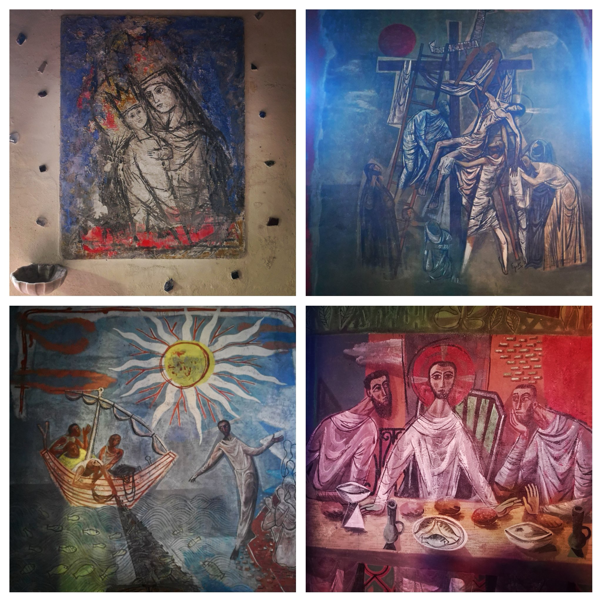 Op het einde van het dorp staat een soort klein vierkante gebouwtje met een groot kruis erop. La chapelle ‘Eulalie’, waarover Antoinette me deelde. Ik herken het werk van Jean-Marc.