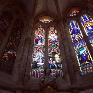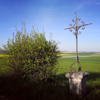 Een lange tocht doorheen een open landschap. Velden in verschillende groen tinten. Af en toe nog wat wijnranken. Wat groeit die snel. Iemand vertelde me dat deze ook ’s nachts blijven groeien. In Saint-Amand-sur-Fion weet ik de frisheid van de kerk met zijn voorportaal te appreciëren.