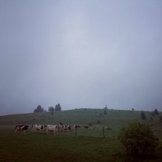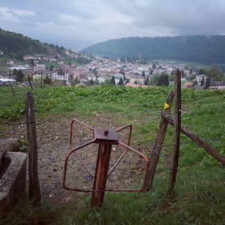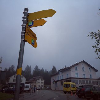Terwijl Françoise haar maaltijd klaar maakt voor een familiefeest, vul ik mijn dagboek aan. Buiten is het grijs en regen het. Pas rond de middag vertrek ik en trotseer ik de regen. Nog zes kilometer en dan wandel ik op Zwitserse bodem.