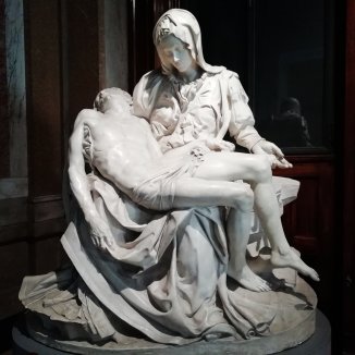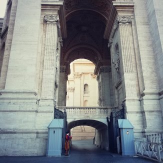 We verlaten het museum, het laatste bezoek van de dag is de Sint-Pieters Basiliek. We stappen binnen…. Iets enorm komt op me af zodra ik binnenstapt, alsof ik een ondoorzichtbaar gordijn ben doorgestapt. Ik weet niet hoe ik me anders kan uitdrukken. Ik barst uit in tranen… Ik krijg er geen woord meer uit… Vol… Groots… Ik kijk Jean-Paul aan… Ook hij is aan het wenen… Zonder woorden begrijpen we elkaar… Ik stap verder naar voor… Ik laat de indrukken verder op me afkomen… Af en toe overvalt me terug een huilbui. “Mon chemin ce fini que maintenant”, zegt Jean- Paul. Inderdaad pas nu hier in de basiliek Sint Pieters eindigt deze pelgrimstocht van la Via Francigena. Een krachtig moment…onderhuids Ingeprint…