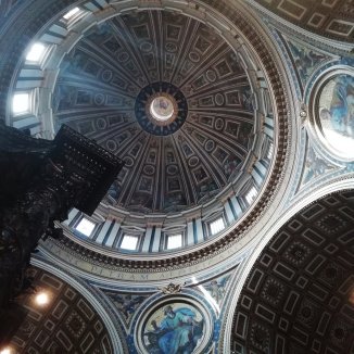De Sistine kapel. Ongelofelijk indrukwekkend, wel teveel om alles te zien. Dit is voor mij een ruimte waar je bijna alleen zou mogen zijn, liggend op de grond en je laten onderdompelen.