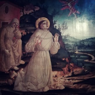 Ook de vraag of mijn credential voor de Franciscus weg is aangekomen per post. Ik deel met haar de gebeurtenissen van op de weg en hoe mijn pelgrimstochten tot stand zijn gekome. .. La Triskele… Paola ziet de tekening… Ze wijst met de vinger naar de drie cirkels… Compostela, Assisi, Roma… Meld ze.