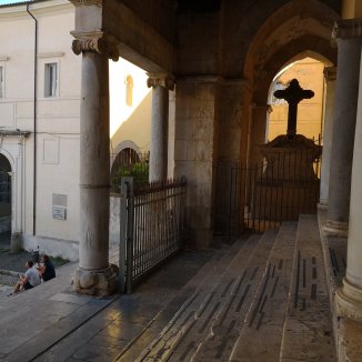 Moe kom ik aan Sessa Aurunca. Ik stap binnen in een fotozaak, zo eentje waar de tijd is blijven stilstaan. Een vriendelijke dame helpt me aan een overnachting. Met mijn vertaler op de gsm proberen we te communiceren. Ze bied me een stoel, koffie en frisdrank aan. Ik zeg aan alles geen neen… Uitgeput…. Na een half uur kom ik terug op krachten. Ik voel zo mijn hele wezen terug in zachtheid komen. Om 20 uur wordt ik verwacht aan de Duomo meld de dame. Al zoenend nemen we afscheid. De vrouw vraagt me haar mee te nemen op de weg, zonder enige twijfel… ‘Si, si’, zeg ik haar.